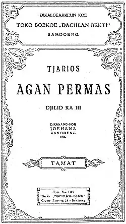 - Tjarios Agan Permas [The Tale of Agan Permas] (in Sundanese). Bandung: Dakhlan Bekti. (three volumes; 148 pages total)