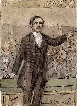 Baron Johan August Gripenstedt (11 August 1813 – 13 July 1874) was a Swedish businessman and politician.[1] During his political career, Gripenstedt was a member of the Swedish Estates Assembly (as a representative of the nobility) from 1840 to 1848, Minister without Portfolio from 1848 to 1856, Minister for Finance from 1856 to 1866,[2] and Member of Parliament from 1867 to 1873. He is best known for his ten years tenure as Minister for Finance, during which he introduced many liberal economic reforms and fought for issues such as free trade and state owned railways.
