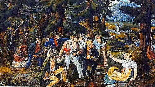 - Die Gefangennahme der Räuber (Rosenbergerbande) (Capturing the Robbers), 1822, Gouache, private collection
