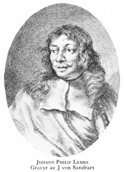 Johann Philip Lemke, also given as Lembke or Lemcke (19 May 1631, Nuremberg – 3 April 1711, Stockholm) was a German-Swedish graphic artist, etcher and battle painter.