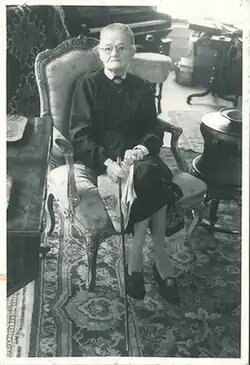 ![]() Johanna Kissling sitting on a chair inside The King's Arms Hotel, Melrose | |