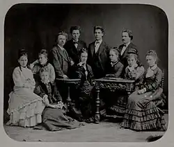 Johannes is the rightmost. The three others are (from left) Edvard Grieg, Lauritz Grimstad and H. Ingelius. They are in Leipzig in 1876