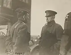 Upon reporting to General John J. Pershing, Commander-in-chief (CinC) of the American Expeditionary Forces (AEF) on the Western Front, he was assigned to succeed Brigadier General Charles R. Boardman in command of the 64th Infantry Brigade of the 32nd Division but later assumed command of the 4th Marine Brigade, part of the 2nd Division, immediately following the attack of the division in the Battle of Soissons. Of note, Earl Hancock Ellis was then serving as the brigade's adjutant. On July 28, 1918, Major General Lejeune assumed command of the 2nd Division after its former commander, Major General James Harbord, had been reassigned to command the AEF's Services of Supply. He was the second Marine officer to hold an Army divisional command, Brigadier General Charles A. Doyen having previously commanded the division for two weeks. Lejeune commanded the 2nd Division during the victorious action at the battle of St. Mihiel in September.[22] The operation was a success, and Lejeune sent an order of congratulations to the men of his command: