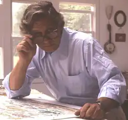 ![]() Alcorn at his drawing board at his house in Lyme, Connecticut, 1989 | |
