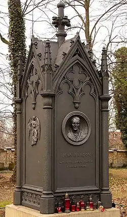 John married Helene Antonie Galli, daughter of an Italian merchant, in Gleiwitz in 1804 and had 7 children (5 sons, 2 daughters). He died in Gleiwitz and is buried there at the Metallurgical Cemetery, known as the Cmentarz Hutniczy in Polish.