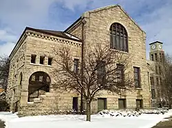 In 1867, Baldwin purchased the Darby plantation in Louisiana, a plantation of about 1,700 acres (6.9 km2).[13] At the age of eighty, Baldwin learned of the situation in India; there were large numbers of Europeans in India who could not get a proper education.[14] The Baldwin High School for Boys and the Baldwin High School for Girls were then built in 1880. John Baldwin died at his home in Baldwin, Louisiana on Sunday, December 28, 1884, at 10 A.M.[15] Baldwin's family even left their legacy on the campus long after Baldwin's death. A person of historical significance to the university's history is Philura Gould Baldwin. Philura Gould Baldwin graduated in 1886 and was the granddaughter of John Baldwin. Philura started the school's first library by collecting and cataloging books. Beyond this, Philura suggested the traditional colors of brown and gold for the school colors.[16] These were also the school colors for Baldwin University, which still stand today. Philura died from consumption at age 26 (b. November 28, 1865; d. March 3, 1892). The Baldwin family donated funds for a library that was dedicated in her memory in June 1894.[16] The Philura Gould Baldwin Library was eventually made part of the Malicky Center in the 1900s.[16][17][18]