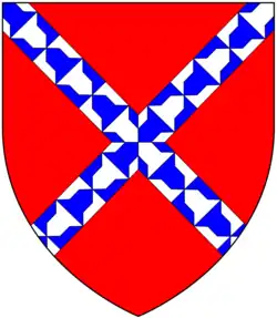 - ^ These arms of Willington a saltire vair are shown on the tomb in Barcheston Church, Warks., of William Willington (died 1555), of Willington manor and his wife Anne, whose alabaster effigies lie on top of the tomb (Victoria County History, Vol.5, Warwickshire, Kington Hundred). Also same arms listed in Heralds' Visitation of Warwickshire, 1619 (Wellington de Hurley): Gules, a saltire vair. The Dering Roll of Arms lists the arms of "Rauf de Wiltone" as Gules, a saltire vair. Tristram Risdon in his Survey of Devon (1630) gives the arms of Willington of Umberleigh apparently incorrectly as: Party per pale dente argent and gules, a chief or (1810 edition, p. 317) and these arms are shown in 19th-century stained glass in Atherington Church impaling the arms of Champernowne: Gules, a saltire vair between 12 billets or