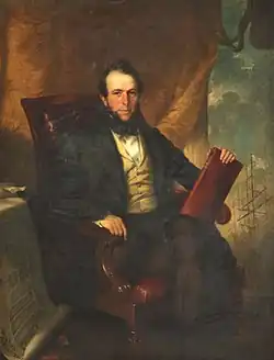 In 1841, Bramley-Moore was elected by the Liverpool town council as an alderman,[3] an office which he held for 24 years.[4][5][6] In 1841 he became a member of the dock committee (afterwards called the dock board), and in the following year was appointed chairman. He worked for the 1846 arrangement with the Earl of Derby, by which two miles of the foreshore of the River Mersey, from the borough boundary to Bootle, became available for the construction of docks. After the opening of the Albert Dock by Prince Albert in 1846 he was offered a knighthood, which he declined. Five other docks were opened on 4 August 1848, one of which was named Bramley-Moore Dock.[2]