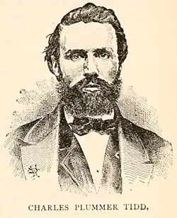 - Charles Plummer Tidd, a "lumberman" from Maine,[13]: 24 had been a farmer in Kansas,[106] where he met Brown.[51]: 345 He died during the Civil War, 1862. Another reference says he was from Worcester County, Massachusetts. After enlisting in the Union Army, while his regiment was stationed at Roanoke Island, North Carolina, he died of a fever; his remains are buried at New Bern, North Carolina.[106][107] Owen Brown, upset at the reaction to his comments on Tidd in his interview published in The Atlantic,[51] said in a reply letter: "[M]y impressions of Tidd are that he was a very warm friend, generally of peaceful disposition, true, and devoted to his ideas of rights and moral principle. He was firm and persistent in what he undertook, somewhat inclined to be arbitrary, and with a temper not always under perfect control. As a whole, he stands far above the average of men. I hold for him a warm friendship."[108]