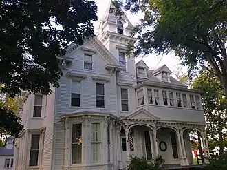 The John C. Anderson House is a historic house located at 920 W. Breckenridge St. in Carlinville, Illinois. The house's first floor was built in 1883, while its second floor was added in 1892. The first floor has an Italianate design featuring tall, narrow windows, an asymmetrical porch with paired columns, paired brackets, and a dentillated cornice. The second floor is designed in the Queen Anne style and includes a square tower with stick style framework, a multi-component roof with gabled dormers, and a stained glass window with a decorative wooden frame. Local banker C.H.C. Anderson built the house for his son John C. Anderson as a wedding gift; John and his wife Lucy lived in the house until their deaths in the 1930s.