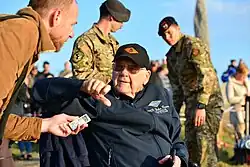 Following his retirement from the Army, Raaen's legacy continued to be honored within the U.S. Army. In recognition of his pioneering work in ammunition and ordnance management. He was inducted into the U.S. Army Ordnance Corps Hall of Fame in 2009[23] and the Ammunition Hall of Fame in 2014.[1] Raaen's contributions to military logistics, ordnance, and munitions continue to serve as a model for modern Army operations.[1] In 2022, 78 years after D-Day, the Army Rangers were given a Congressional Gold Medal for "their extraordinary service during World War II".[24] At the time, Raaen was one of only 13 of the nearly 7,000 Rangers who served in World War II who were still living.[25]