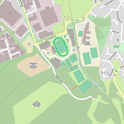 The stadium has been used by Leeds United for reserve matches, and since November 1995 by rugby league club Hunslet. It is the principal athletics stadium in the Leeds area and is the home of Leeds City Athletics Club. South Leeds F.C. (formerly Middleton FC) have used the stadium since 2024 enabling the club to be promoted to the Northern Counties East League.