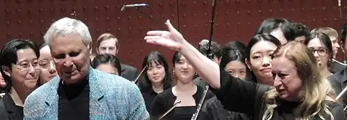 ![]() Corigliano and Simone Young at the Juilliard School's Piano Concerto Competition Finals in April 2023 in Alice Tully Hall where Corigliano's Piano Concerto was played by Jack Gao. | |