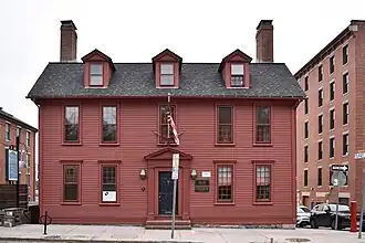 This house is one of the few pre-Revolutionary buildings to survive an 1801 fire in the area, and now sits somewhat incongruously in an area occupied mostly by larger commercial brick buildings.[2]