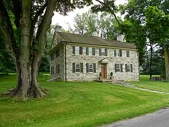 This historic structure is a 2+1⁄2-story, five-bay, stone dwelling with a center hall plan, and was designed in the Georgian style. Built circa 1769, with a remodeling sometime after 1815 when a summer kitchen was added and the original walk-in fireplace was filled in, this house was restored in 2007. Also located on the property are a contributing bank barn, log smokehouse, and the ruins of a stone carriage shed. It was the birthplace of Pennsylvania Governor William Cameron Sproul (1870–1928).[2]