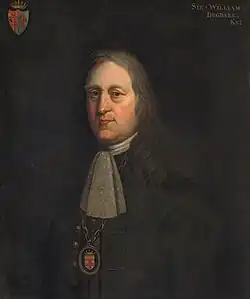 He was born on 1 June 1628 at Blyth Hall, Shustoke, Warwickshire and was educated at the grammar schools in Sutton Coldfield and Coleshill. He appears to have trained as a surveyor and worked for various royalist landowners during the Interregnum. In 1660 he joined the Earl of Clarendon's household as senior gentleman usher. In 1662, he married Mary Baker, the daughter of a Windsor attorney. They had two children, William and Mary. Following his wife's death in 1671, he married Elizabeth Pigeon, the heiress of a Coventry apothecary, with whom he had a daughter Elizabeth.[1]