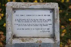 A small memorial to Dundas is on a cliff-top path east of Freshwater Bay on the Isle of Wight,[34] close to the point where his final battle took place. It was installed in November 2000, on the 60th anniversary of his death.