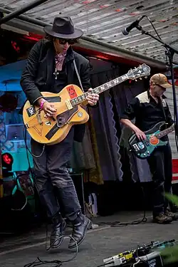 John E Vistic is a British, Bristol-based singer-songwriter, and the lead singer and/ guitarist for The John E Vistic Rock N Roll Soundsystem.[1][2][3] John E Vistic is the founder of The Ark Charity Album series Vols.1 and 2. compiling 47 Bristol acts giving their work for the Quartet Charity Covid Appeal [4][5][6] The Ark Vol. 1 (of current Two volumes) contains a cover version by John E Vistic of the Portishead song, "Glorybox" recorded in the same studio (Coachhouse Studios) as Portishead's original.[7] John E Vistic is also lead guitarist with James Ray and the Blackhearted Riders, most recently touring and playing on their album Broken Glass & Bullet Holes (2018).[8] James Ray is known for his work with Gang War and The Sisters of Mercy.