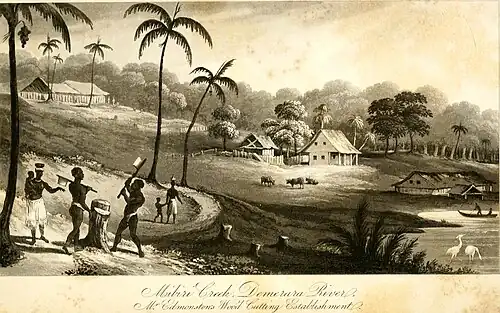 Born into slavery on a wood plantation in Demerara, British Guiana (present-day Guyana, South America), he was given the surname of his slave-owner, Charles Edmonstone, who owned the plantation and also owned the Cardross Park estate at Cardross, near Dumbarton in Scotland. Around 1812 the plantation was visited by the naturalist Charles Waterton, who spent considerable time teaching John Edmonstone taxidermy.[3][1][4][5]