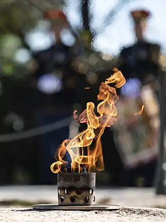 ![]() John F. Kennedy Eternal Flame at Arlington National Cemetery after its 2013 renovation | |