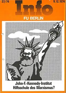 Due to its proximity to U.S. institutions, the institute was soon targeted by the Stasi. As part of the student movement of 1968, which was particularly strongly represented at Freie Universität and showed solidarity with the anti-Vietnam protests in the US, demonstrations were also repeatedly held at the institute. After the new Berlin Higher Education Act of 1969 gave students and employees the same number of votes on the Institute Council as professors, the mood became increasingly polarized. In 1974, an FU publication was titled: "John F. Kennedy Institute - Auxiliary School of Marxism?".