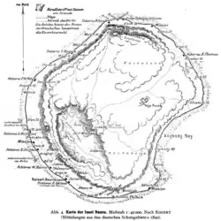 Hunter departed Sydney 20 August 1798 bound for New Zealand. On arrival six weeks was spent at the Thames River, in the North Island, taking spars.[5][6] She sailed from New Zealand in October and went on to discover Hunter Island (sometimes called Fearn Island) and then Nauru, which was sighted on 8 November 1798.[7][8][9][10] Captain Fearn named it Pleasant Island due to its attractive appearance.[8]