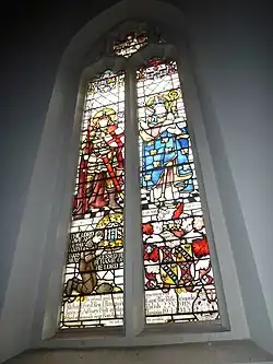 Elkington's youngest son served with the 10th battalion of the Rifle Brigade during the Second World War and was killed in action near Bou Arada, Tunisia on 19 January 1943. Elkington bestowed a stained glass window in his son's honour at the Church of the Ascension in Burghclere.[1] Elkington died on 27 June 1944, before it could be unveiled.[21][1] The window, with additional plaques honouring Elkington and his son-in-law Sir Richard de Bacquencourt des Voeux (who was killed while commanding the 156th Parachute Battalion at the Battle of Arnhem on 20 September 1944), was unveiled in May 1946 by Montgomery. Mary Elkington died on 26 May 1956.[1] Elkington's tunic is held in the collection of the Warwickshire Regiment's Museum.[20]: 128