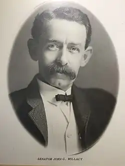 John G. Willacy (November 10, 1859 – September 19, 1943) was a Texas Democratic politician.[1] He introduced legislation which created Willacy County, which is his namesake. He also introduced legislation which gave local political jurisdictions, typically counties or municipalities, the power to make decisions on certain controversial issues based on popular vote within their borders. In practice, it usually relates to the issue of alcoholic beverage sales, which in the 1920s and 30s was a controversial issue, especially as prohibition in the United States was in effect. [2]