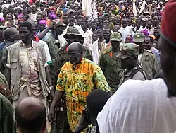 John Garang De Mabior (June 23, 1945 – July 30, 2005)[1] was a Sudanese politician and revolutionary leader. From 1983 to 2005, he led the Sudan People's Liberation Army/Movement (SPLA/M, Now known as South Sudan People's Defense Forces) as a commander in chief during the Second Sudanese Civil War. He served as First Vice President of Sudan for three weeks, from the comprehensive peace agreement of 2005 until his death in a helicopter crash on July 30, 2005.[2]