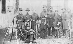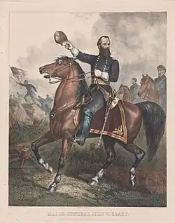 At the start of the Civil War, Geary raised the 147th and 28th Pennsylvania Infantry regiments and became colonel of the latter.[10] Commanding the district of the upper Potomac River, he was wounded and captured near Leesburg, Virginia, on March 8, 1862, but was immediately exchanged and returned to duty. On April 25, 1862, he was promoted to Brigadier General, U.S. Volunteers and the command of a brigade in Maj. Gen. Nathaniel Banks's corps, which he led in the Shenandoah Valley against Thomas J. "Stonewall" Jackson. His brigade joined Maj. Gen. John Pope's Army of Virginia in late June. He led it at the Battle of Cedar Mountain on August 9, 1862, where he was seriously wounded in the arm and leg. He returned to duty on October 15 as the division commander; the corps was now part of the Army of the Potomac, designated the XII Corps, under the command of Maj. Gen. Henry W. Slocum.
