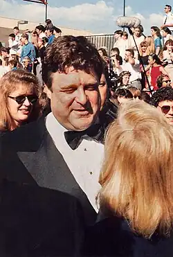 Goodman rose to fame in acting by playing the role of Dan Conner on the ABC sitcom Roseanne from 1988 to 1997. He returned to the character in 2018 for the revived, 10th season, where he said "Roseanne and I just went back to having a ball",[6] and then stayed on for the show's subsequent spin-off The Conners. Goodman had a long history of appearances on late night comedy shows and was the first guest on Late Night with Conan O'Brien, which won him the series' "First Guest Medal" (Goodman joked he would pawn the medal for a bottle of cheap Scotch).[15] Goodman has hosted NBC's Saturday Night Live 13 times, while also making seven cameo appearances as Linda Tripp during the Monica Lewinsky scandal, three appearances as Rex Tillerson, and cameoing on the season 28 finale hosted by former SNL cast member Dan Aykroyd.[9] With little to no experience in TV comedy, Goodman auditioned to be a cast member for Jean Doumanian's tumultuous 1980–1981 SNL season and was rejected, along with up-and-coming comedians Jim Carrey, Paul Reubens, and Robert Townsend.[16]