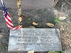 In the years before the American Revolution broke out Hazelwood served as a captain on various merchant vessels, most often shipping goods between Philadelphia and London. In 1772 he became one of the founders of the Saint George society of Philadelphia.[1] Hazelwood married his first wife, Mary Edgar, who died in 1769 at age 36. In 1771 he married the widow Ester Leacock. His first and second marriage brought him five children. His first child, Thomas, by his first wife, became a captain in the Pennsylvania Navy during the Revolution. His son, John, was a lieutenant in an artillery company serving in the Pennsylvania Western Expedition in 1794. John Jr. died in action only weeks after his father's death in 1800 and was buried next to him. Hazelwood was a vestryman of Christ Church in Philadelphia from 1779 to 1783.[2]