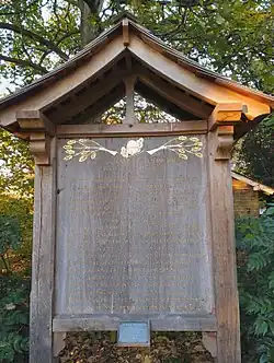 In Richmond Park's Pembroke Lodge gardens, there is a memorial to the poet James Thomson, who died at Richmond in 1748. This is a black wooden board with a poem about Thomson by John Heneage Jesse.[2]