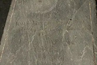 Hinchliffe was ordained as a deacon on 28 December 1756, and as a priest on 19 May 1757, both by Matthias Mawson, Bishop of Ely, at Kensington Parish Church.[2] Chaplain to Elizabeth Hobart, Countess of Buckinghamshire from 1757 to 1762, he was an assistant master at Westminster School from 1757 to 1764, he acted as headmaster for three months in 1764 before becoming tutor to William Cavendish, 5th Duke of Devonshire from 1764 to 1766.[1][2] He was Domestic Chaplain to Spencer Compton, 8th Earl of Northampton from 1763 to 1773 and also to Frederick Cornwallis (who was Bishop of Lichfield until 1768 and Archbishop of Canterbury from 1768) from 1768 until 1781. Vicar of Greenwich from 1766 to 1769, Hinchliffe was briefly Vice-Chancellor of the University of Cambridge from 1768 to 1769, was made a Chaplain to George III in 1768, and appointed Master of Trinity College in the same year.[1] In 1769 he was made Bishop of Peterborough. As bishop he played an active role in the House of Lords over the war with America.[1] In 1788 he resigned the Mastership of Trinity College. From 1789 until his death, Hinchliffe was Dean of Durham.