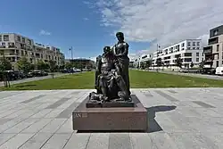 The John III Sobieski Monument (Polish: Pomnik Jana III Sobieskiego) is a bronze statue in Warsaw, Poland, located in the district of Wilanów, at the intersection of Royal Axis and Sarmacka Streets. It depicts king John III Sobieski, monarch of the Polish–Lithuanian Commonwealth from 1674 to 1696, together with his wife, Marie Casimire d'Arquien, and two dogs. The sculpture was made in 1999 by Edward Jeliński and unveiled on 9 September 2001. It was originally placed at the intersection of Klimczaka and Przyczółkowa Streets, and was moved to its current location in 2013.