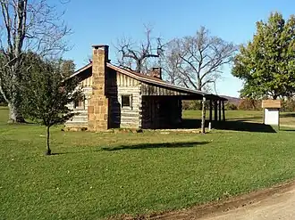 In 1829, Sam Houston sought refuge with Jolly after his brief marriage to Eliza Allen, which sparked many rumors and theories, and led to his resignation as governor of Tennessee.[15] Jolly met Houston when the steamboat arrived at Fort Gibson with a number of his enslaved men bearing torches.[16] Jolly was grateful for Houston's return, both because he was happy to be a place of refuge and because the Nation could use his assistance in ensuring that the Cherokee people's voices were heard by the government.[17][c]