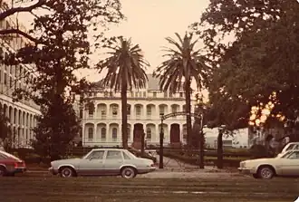 Toole returned home in 1959 to spend a year as assistant professor of English at the University of Southwestern Louisiana (USL), since renamed the University of Louisiana at Lafayette. Joel L. Fletcher, a close friend, noted, "Ken has a real gift for mimicry and a refined sense of the absurd ... the English faculty at USL, which is divided into several camps of war, both fear and court Ken because of his biting comic talent."[42] This year is generally considered one of the happiest of his life.[43] While at USL he rented a dilapidated apartment from an elderly and eccentric widow on Convent Street.[44] Toole described the apartment as a "Conradian metaphor" to friends.[44]