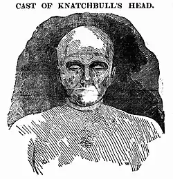 In the hours after Knatchbull's death a cast of his head was taken "for phrenological purposes". It appears that an artist employed by The True Sun was present during this process. On 28 February 1844 a wood-cut image of Knatchbull, "two hours after his execution" and with a shaven head, was published in the newspaper.[57][58]
