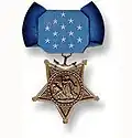 | 2nd row | Bronze Star Medal with Combat Distinguishing Device[18][19] | Purple Heart[18][19] | Navy and Marine Corps Commendation Medal with Combat Distinguishing Device[18][19] | Combat Action Ribbon[18][19] | ||||
