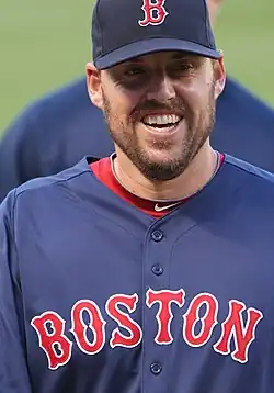 John Derran Lackey (born October 23, 1978) is an American former professional baseball starting pitcher who played in Major League Baseball from 2002 through 2017 for the Los Angeles Angels of Anaheim, Boston Red Sox, St. Louis Cardinals and Chicago Cubs. A three-time World Series champion with three different teams, Lackey is regarded as a key figure in his clubs' postseason success, winning the title-clinching games of two out of the three Series. Selected to the MLB All-Star Game in 2007, he won that year's American League (AL) earned run average (ERA) title. After missing the 2012 season due to ulnar collateral ligament reconstruction surgery in his pitching elbow, and helping the Red Sox win the 2013 World Series, Lackey was named the winner of the Tony Conigliaro Award.