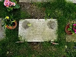 Towards the end of his life Le Mesurier wrote his autobiography, A Jobbing Actor; the book was published in 1984, after his death.[156] Le Mesurier's health visibly declined from July 1983 when he was hospitalised for a short time after suffering a haemorrhage.[125] When the condition recurred later in the year he was taken to Ramsgate Hospital;[157] after saying to his wife, "It's all been rather lovely", he slipped into a coma[158] and died on 15 November 1983, aged 71.[159] His remains were cremated, and the ashes buried at the Church of St. George the Martyr, Church Hill, Ramsgate. His epitaph reads: "John Le Mesurier. Much loved actor. Resting."[160] His self-penned death notice in The Times of 16 November 1983 stated that he had "conked out" and that he "sadly misses family and friends".[126][158]