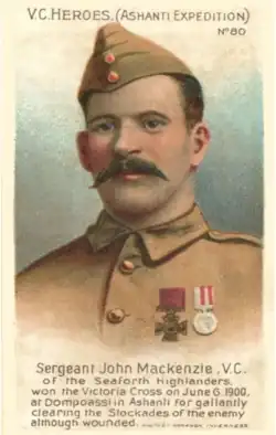 Mackenzie was 29 years old, and a sergeant in the 2nd Battalion, The Seaforth Highlanders (Ross-shire Buffs, Duke of Albany's), British Army, employed with the West African Field Force during the Third Ashanti Expedition when the following deed took place for which he was awarded the VC.
