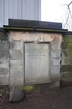 4. ^ "John Manderston | Died: 11 Nov 1831 | Greyfriars Tolbooth and Highland Kirkyard | Grave Site". BillionGraves. Retrieved 11 September 2018.