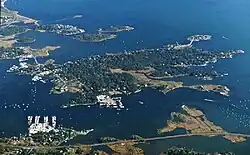 On September 11, 1651 "the island commonly called Chippachauge in Mistick Bay is given to Capt. John Mason, and also 100 acres (0.40 km2) of upland and 10 acres (40,000 m2) of meadow near Mistick, where he shall make choice". Henceforth, this island became known as Mason's Island, situated at the mouth of the Mystic River in Stonington, Connecticut. It was owned by the Mason family from 1651 to 1913.