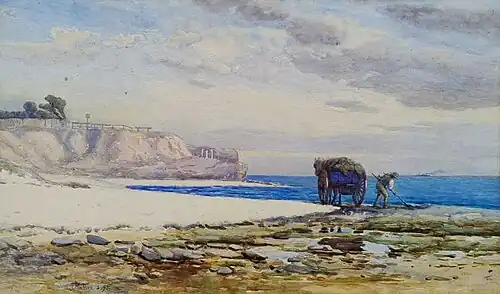 Gathering Seaweed 1897 by John Mather probably exhibited at the Twenty-First Annual Exhibition of the Royal Art Society of New South Wales in 1900 [notes 8]