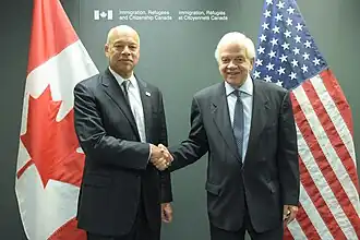 McCallum meets with U.S. Secretary of Homeland Security Jeh Johnson in Ottawa on 27 October 2016.