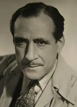 Born in 1892, Miljan was the tall, smooth-talking villain in Hollywood films for almost four decades, beginning in 1923.[2] This kind of smooth villainy was made famous by more established actors like Ward Crane and Miljan continued in the mold after Crane's death in 1928. Miljan made his first sound film in 1927 in the promotional trailer for The Jazz Singer, inviting audiences to see the upcoming landmark film.[3] In later years he played imposing, authoritative parts such as high-ranking executives and military officers.[2] He is best remembered as General Custer in Cecil B. DeMille's film The Plainsman.[4] DeMille also cast him in two notable supporting roles in two of his biblical epics: the Danite elder Lesh Lakish in Samson and Delilah (1949), and the blind Israelite grandfather in The Exodus in The Ten Commandments (1956).
