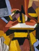 Among the artists he met in the Artists Union there were several who shared Opper's doubts concerning social realism. Balcomb Greene, who, in 1936 became the first chairman of American Abstract Artists, provided one such influence in the direction of abstractionism.[40] As Opper put it, "he was one of the first to argue that there is probably something in art besides the image that you show."[2] Another motivation for his transition to abstractionism came from his feeling for color. During the time that his work was still representational, the reviews he received in New York newspapers noted his facility in handling color.[note 14] He later explained that some of his motivation for abandoning representation came partly from his feeling for color. In 1968 he said, "the more I became aware of color and design the more I came in conflict with the object that I was painting. So it soon became a problem either I let the color go — and keep the composition as it should be, naturalistically or representationally — or I should take freedom with color and design."[2]