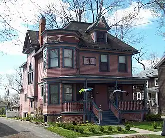 John P. Sommers House is a historic home located at Lancaster in Erie County, New York. It was built in 1906, and is a 2+1⁄2-story, wood-frame Queen Anne style dwelling. It has a hipped roof and center projecting gable. It features a prominent two-story, five-sided corner tower and has a single-story porch across the front facade.[2]