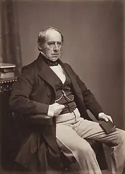 In 1871 Pakington addressed the Social Science Congress, speaking on the "New Social Alliance", with which Disraeli was toying.[20] The term referred to discussions being held between Conservative Party leaders and workers' representatives.[21] They aroused hostility from Tory backbenchers;[22] and George Charles Brodrick called it a "semi-communistic programme".[23] Pakington had joined the ephemeral movement of John Scott Russell, signing with Stafford Northcote, Gathorne Hardy and some of the House of Lords a memorandum on social reform measures to be taken, the "seven points".[24][25] In October, in an article "The New Social Movement", the Saturday Review commented: